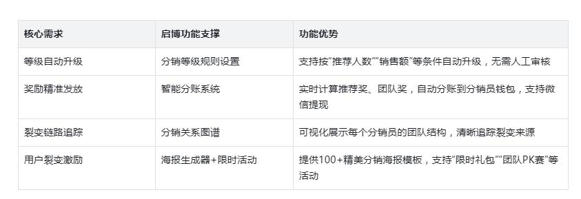 - 启博功能赋能:利用启博的分销裂变工具、数据追踪系统和自动化分账功能,实现高效运营。