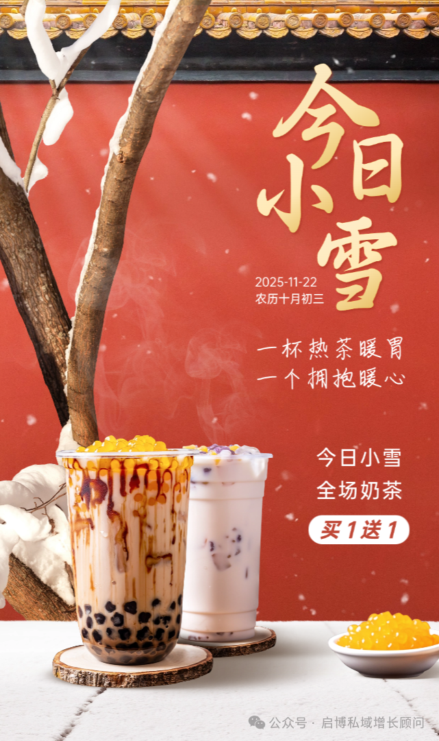 小雪节气标志着天气转冷,保健养生和零食百货行业的商家可抓住这一节点,在 11 月 20-22 日预热,22 日当天开展活动。