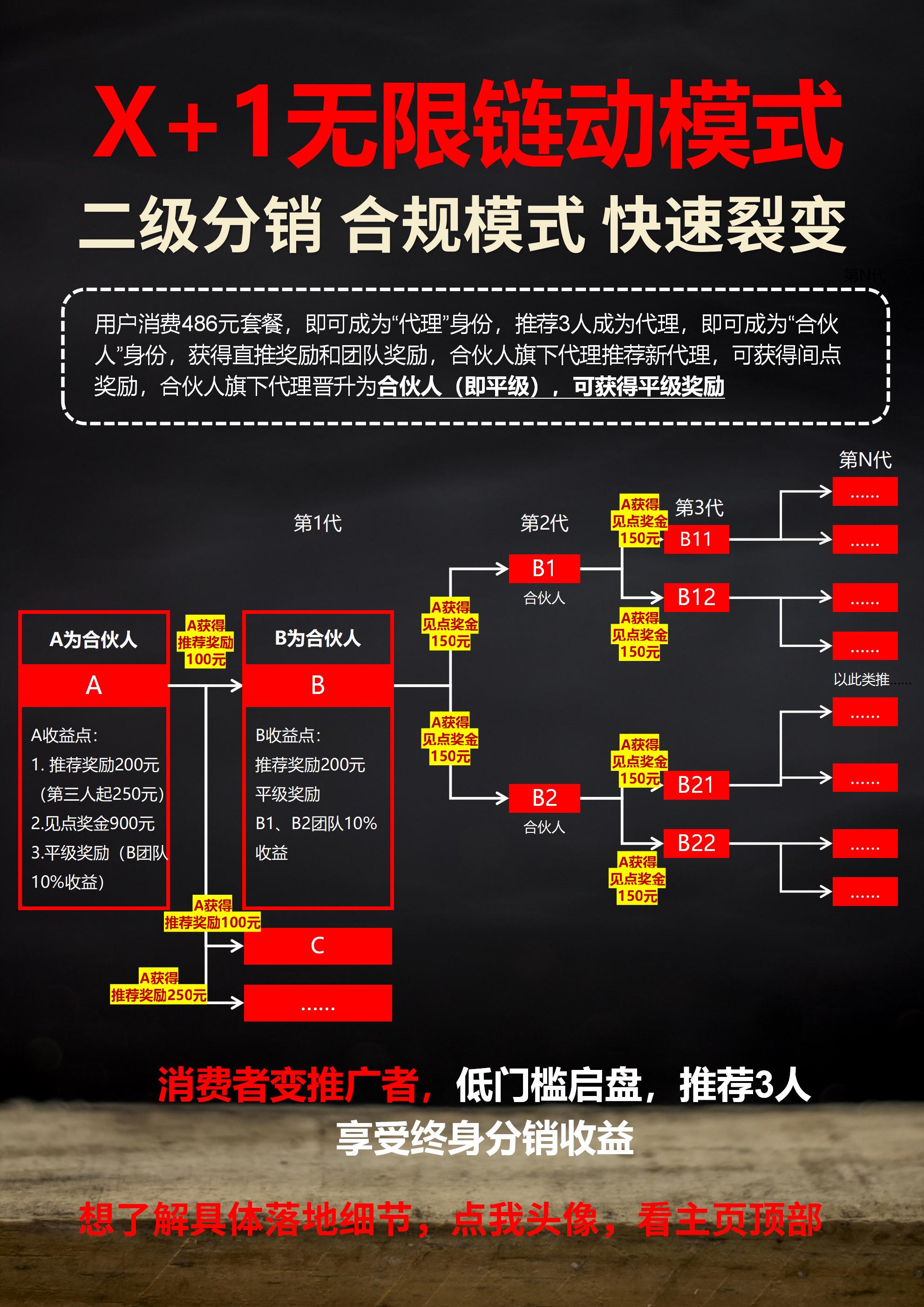 X+1 无限链动模式的本质,是把 “用户” 变成 “利益共同体”—— 品牌获得了裂变式增长,用户获得了低风险的创业机会。无论是传统实体品牌想做私域裂变,还是个人想在社交电商中掘金,这种 “二级分销 + 无限链动” 的模式,都值得成为破局的首选策略。