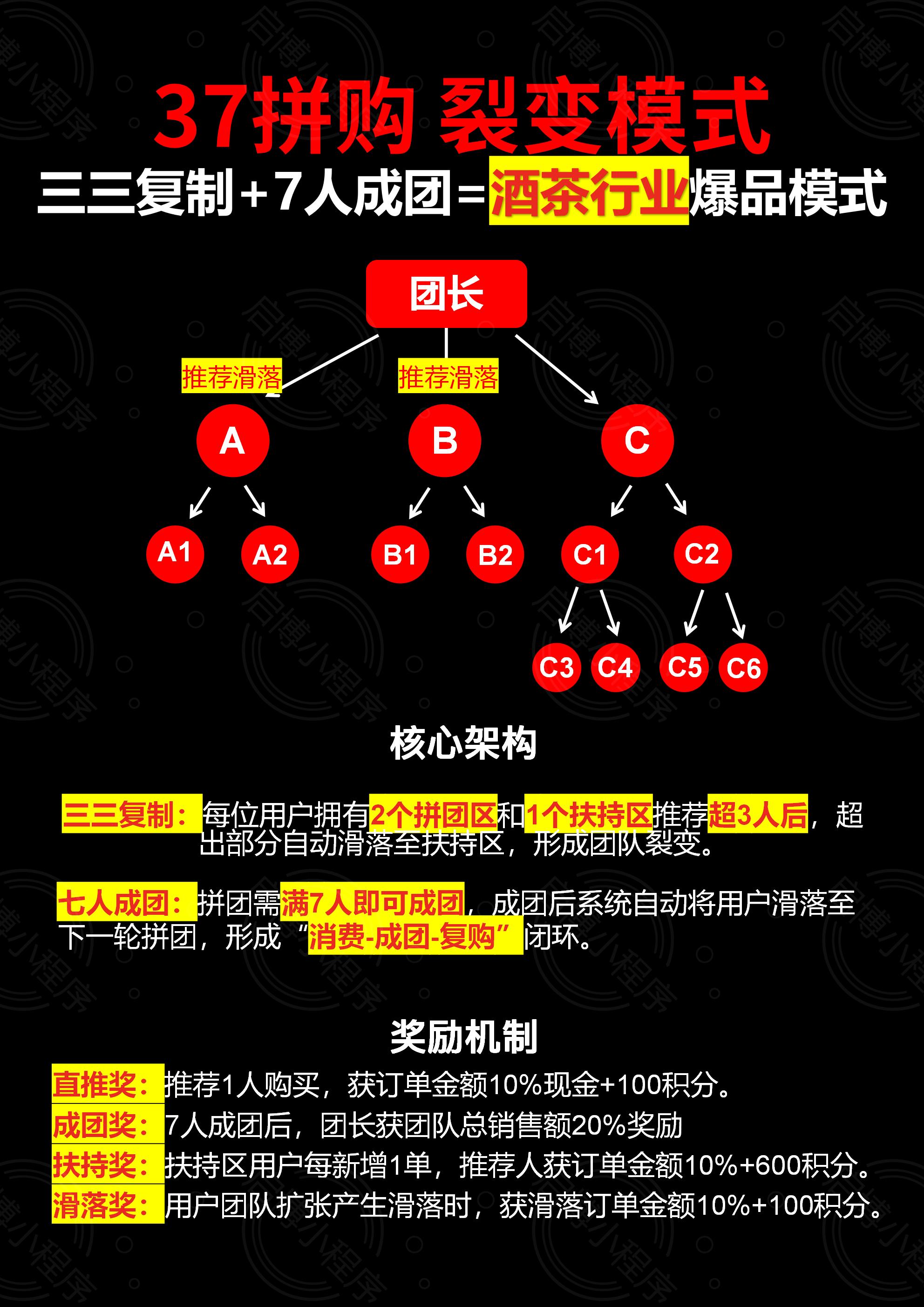 37 拼购模式的核心魅力在于用简洁规则搭建起高效运转的增长体系,三大核心机制共同构成其玩法基石。