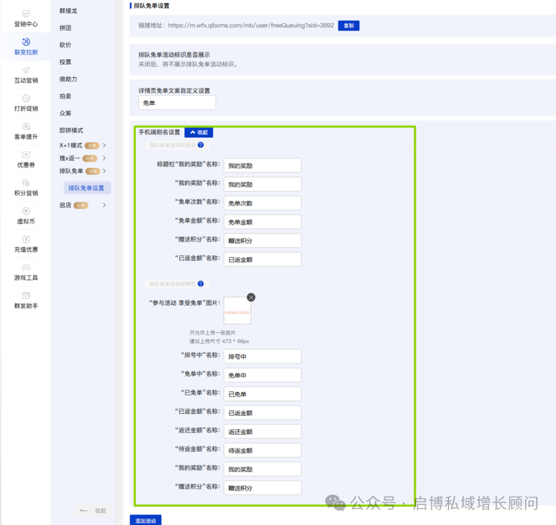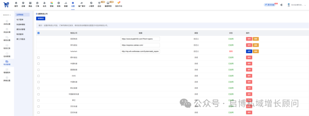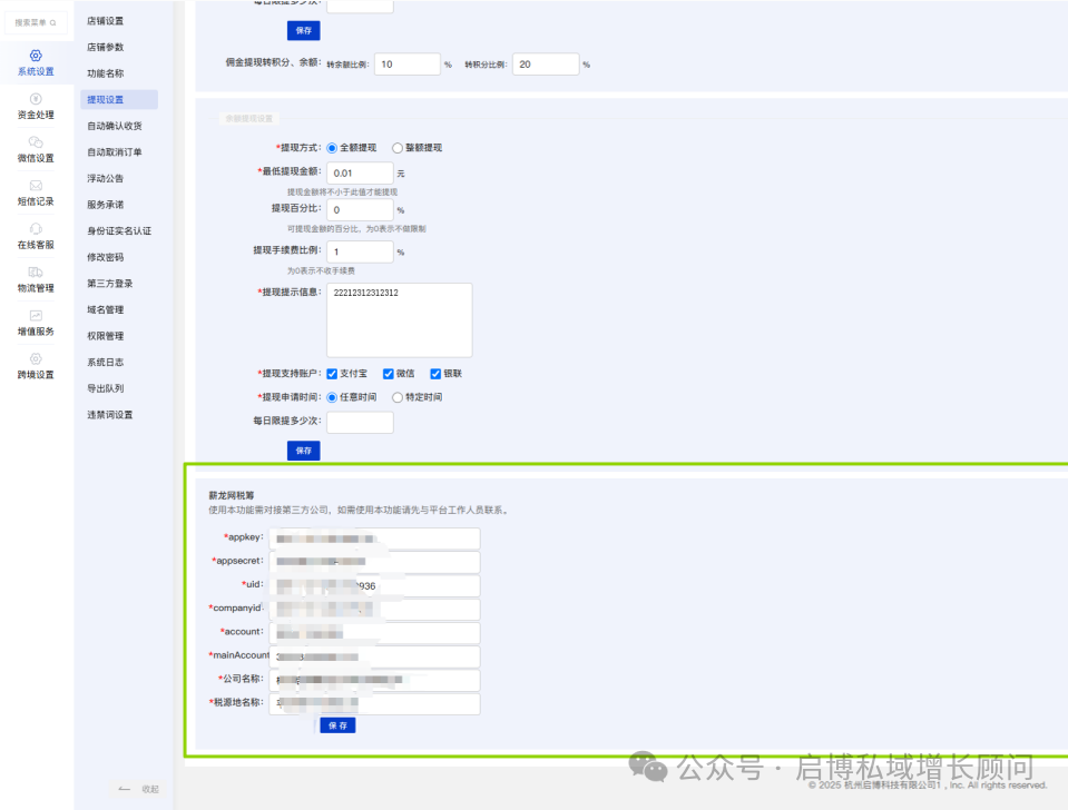 微分销亮点功能更新 第287期更新 商品分组组件【优化】; 新增物流公司【新增】; 员工列表【优化】; 推客带货【优化】; 门店奖励自定义功能名称【新增】; 门店产品展示规则【新增】; 排队免单自定义名称【付费】; 薪龙网税筹【付费】; 推客带货优化【付费】; 其他【优化】; 启博·微分销第287期准时为大家呈上,本期更新以优化为主,部分行踪功能可参见以上目录,详情可咨询产品顾问哦~ 下面跟我一起看看有哪些重点功能吧! 01 商品分组组件【优化】 功能介绍: 装修的商品组件样式选择优化 02 新增物流公司【新增】 功能介绍: 增加“云聚物流”公司,适配小程序物流发货信息管理同步 03 员工列表【优化】 功能介绍: 员工管理列表新增门店名称搜索及列表所属门店数据展示 04 推客带货【优化】 功能介绍: 推客带货新增首单额外奖励金,推客首次推单成功可额外获得相对应比例奖励(微信小店零售价*机构服务费率*该比例)或固定金额 05 门店奖励自定义功能名称【新增】 功能介绍: 功能名称的门店管理新增“门店奖励”名称自定义,修改后在移动端佣金明细显示对应名称 06 门店产品展示规则【新增】 功能介绍: 门店设置新增“门店中心门店产品不展示佣金为0的产品”设置项,开启后移动端门店产品过滤门店佣金为0的产品 07 排队免单自定义名称【付费】 功能介绍: 排队免单活动增加手机端别名自定义 08 排队免单自定义名称【新增】 功能介绍: 移动端排队免单列表页自定义名称位置 移动端排队免单详情页自定义名称位置 09 薪龙网税筹【付费】 功能介绍: 依据新规《互联网平台企业涉税信息报送规定》 我司已对接好三方薪龙网税筹,以便我司商家对个人提现票具方面提供支持 开通后可按操作文档配置 https://qibotech.yuque.com/uapfc8/paibtp/uy4w85kmhxw32es8?singleDoc# 10 其他【优化】 功能介绍: 1、原1号模版优化成时尚服饰新模版 2、搜索组件新增边框及搜索按钮自定义配置