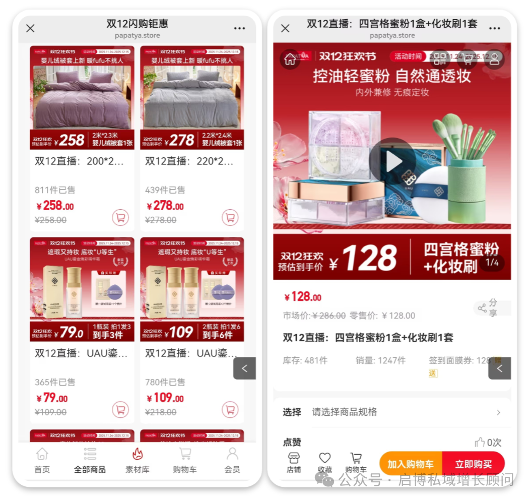 双 12 作为双 11 的 “姊妹篇”,消费者对优惠的敏感度与决策效率要求更高。商家可借助小程序私域的 “便捷性 + 精准触达” 特性,打造 “一看就懂、一触即买” 的营销闭环。