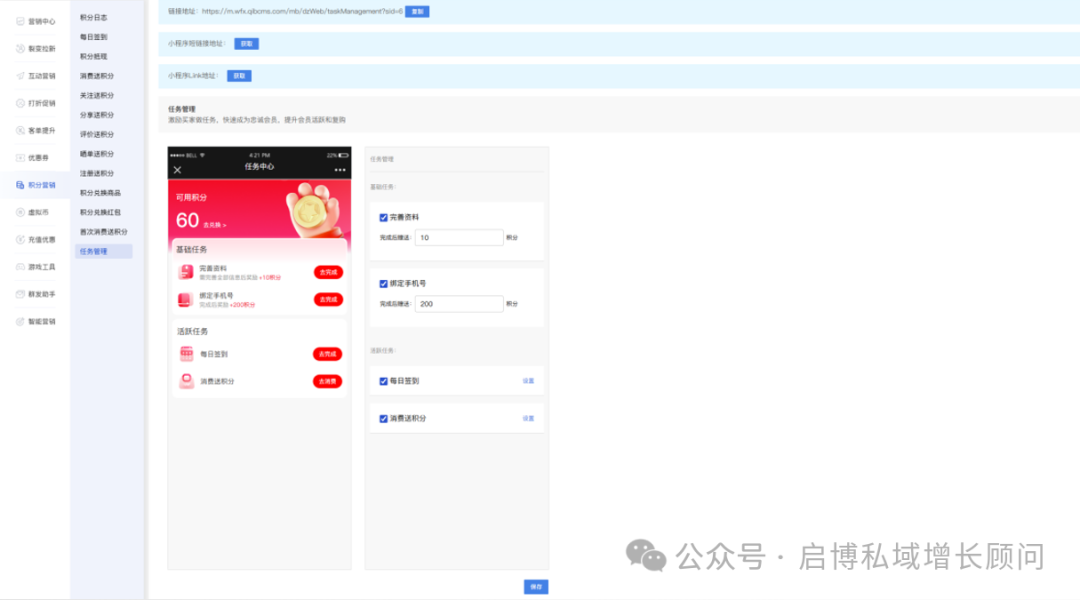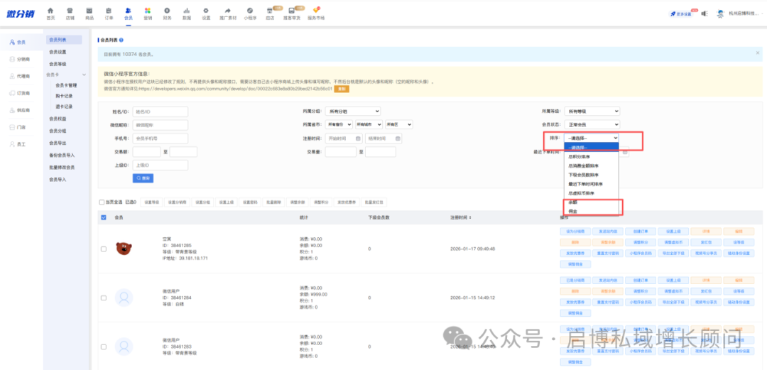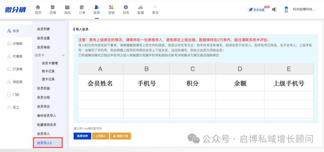 微分销亮点功能更新 第291期更新 新版会员导入功能【新增】; 任务管理【新增】; 会员列表【优化】; 门店列表分享【优化】; 订货商佣金列表导出【优化】; 虚拟商品库【优化】; 薪龙网税筹【优化】; 功能名称【优化】; 萝卜精灵【优化】; 商家小程序【优化】; 订货商出库返区域佣金【优化】; 通联支付【优化】; 后台样式【优化】; 启博·微分销第291期准时为大家呈上,本期更新以优化为主,部分行踪功能可参见以上目录,详情可咨询产品顾问哦~ 下面跟我一起看看有哪些重点功能吧! 01 新版会员导入功能【插件】 功能介绍: 新版导入会员支持通过手机号绑定上级 02 任务管理【新增】 功能介绍: 新增积分任务管理,可设置相对应任务,完成后获得积分 后台开启活动后,移动端会员中心展示入口 点击“去完成”跳转任务页面,完成任务后按钮置灰 03 会员列表【优化】 功能介绍: 商城后台会员列表排序筛选增加余额和佣金 04 门店列表分享【优化】 功能介绍: 门店列表小程序端支持分享 05 订货商佣金列表导出【优化】 功能介绍: 订货商佣金列表导出会员ID和昵称拆分成两列 06 虚拟商品库【优化】 功能介绍: 虚拟商品库后台和移动端账号添加显示地址文案 07 薪龙网税筹【优化】 功能介绍: 增加普票票务类型对接 08 功能名称【优化】 功能介绍: 余额详情中的冻结余额的冻结字段可自定义 09 萝卜精灵【优化】 功能介绍: 1、增加萝卜别名自定义,修改后移动端相关的“萝卜”字段替换成自定义字段 2、获取数增加固定自定义个数,默认随机 10 商家小程序【优化】 功能介绍: 1、商家小程序增加未付款订单修改价格操作 2、全部订单状态增加商家备注操作 11 订货商出库返区域佣金【优化】 功能介绍: 开启插件后,订货商主动出库的订单可以根据收货地址计算区域佣金 12 通联支付【优化】 功能介绍: 会员卡支付支持通联支付 13 后台样式【优化】 功能介绍: 后台首页样式调整优化