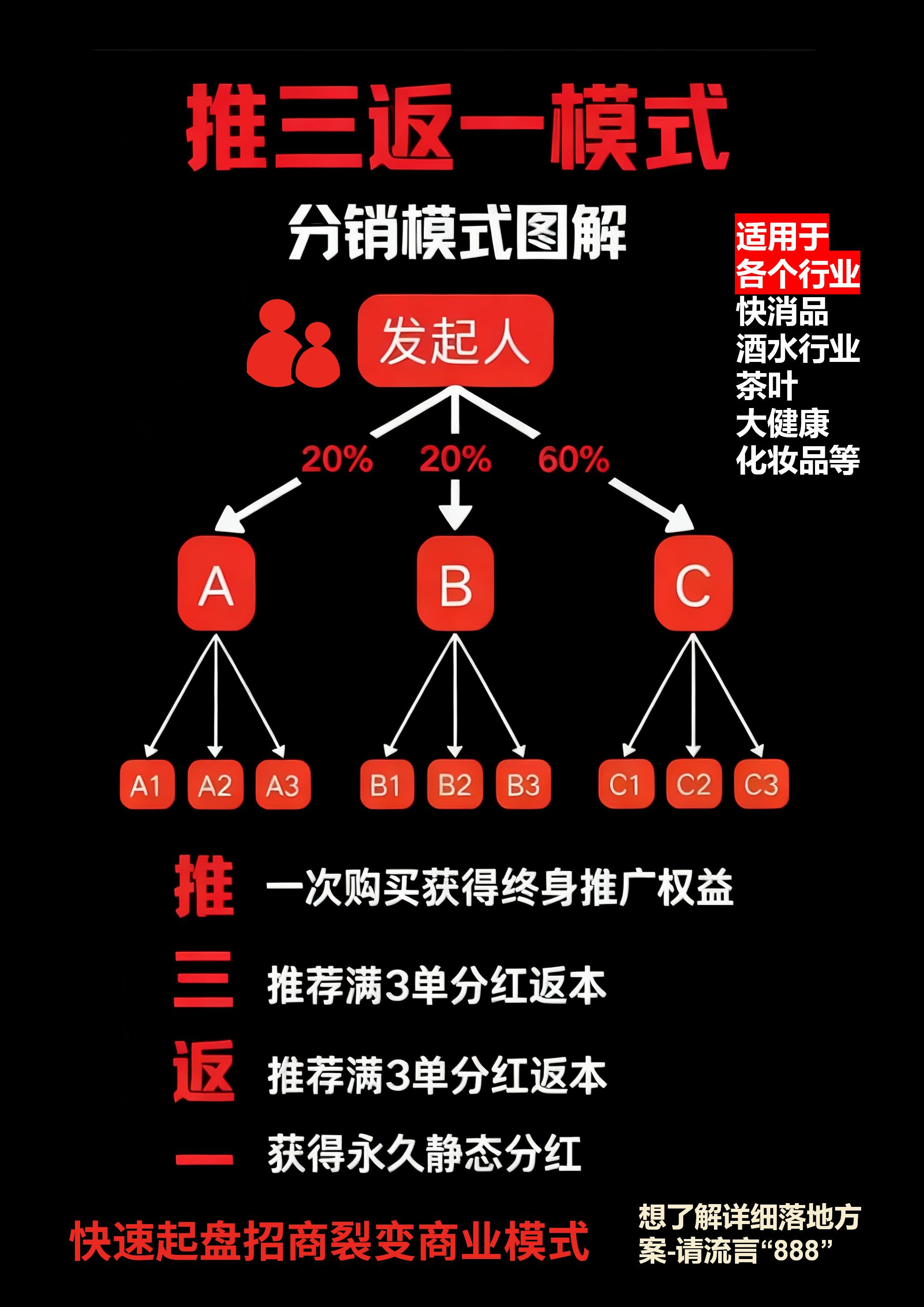 适配场景:大健康产品、中高端酒水、家居建材等高客单价、高利润、需要长期市场教育的品类,适合有一定品牌基础、希望构建长期稳定分销网络的企业。