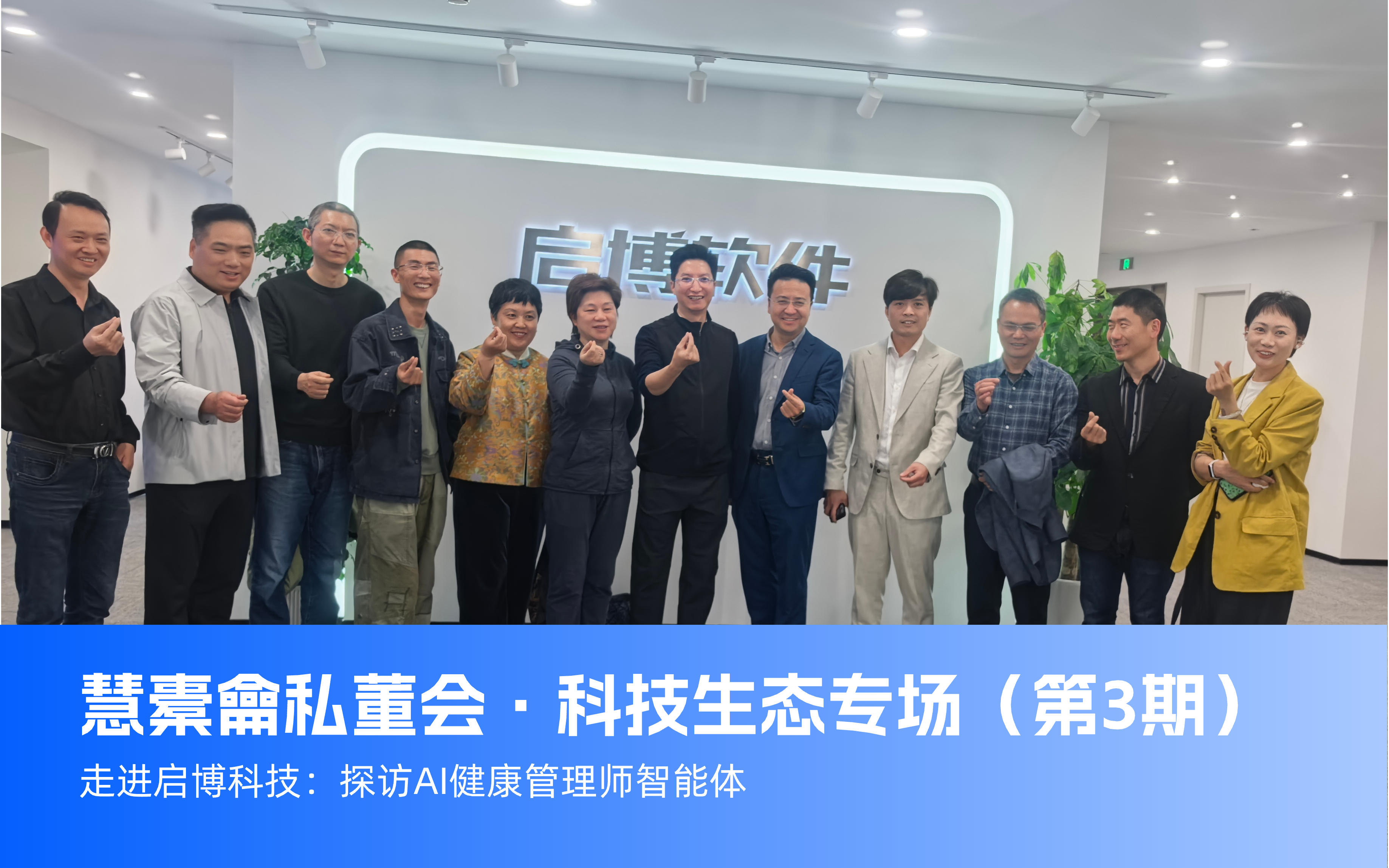 当前,杭州正全力打造 “人工智能创新发展第一城”,政策、资本、技术持续向科技领域加速汇聚,AI 与产业融合迎来黄金发展期。在此背景下,慧橐龠私董会・科技生态专场(第 3 期) 正式走进会员企业启博科技,以 “探访 AI 健康管理师智能体” 为主题,开启一场深度产业交流与生态链接活动。