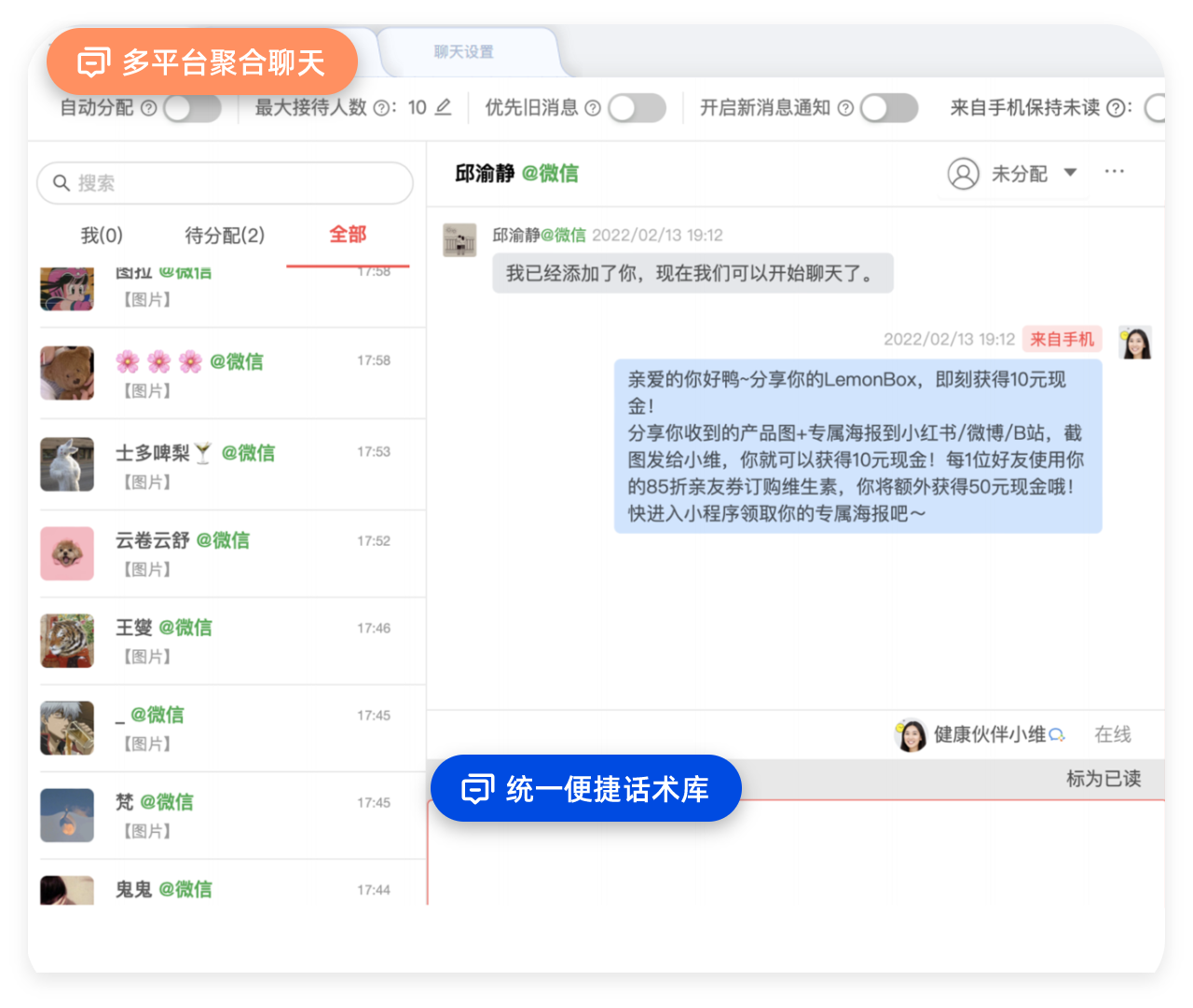 借助启博SCRM,搭建“企微+小程序+社群+公众号”社群分销闭环,一键推送商品,引导客户下单转化
