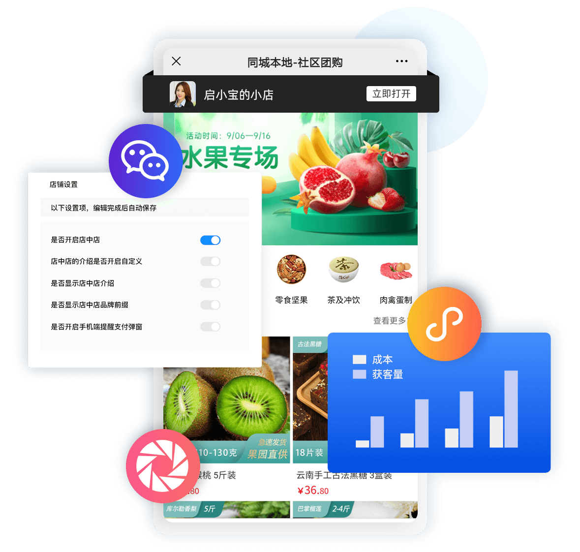 店中店,快速全渠道裂变公众号+小程序+微商城+朋友圈,快速分享裂变,以一店裂变万店,