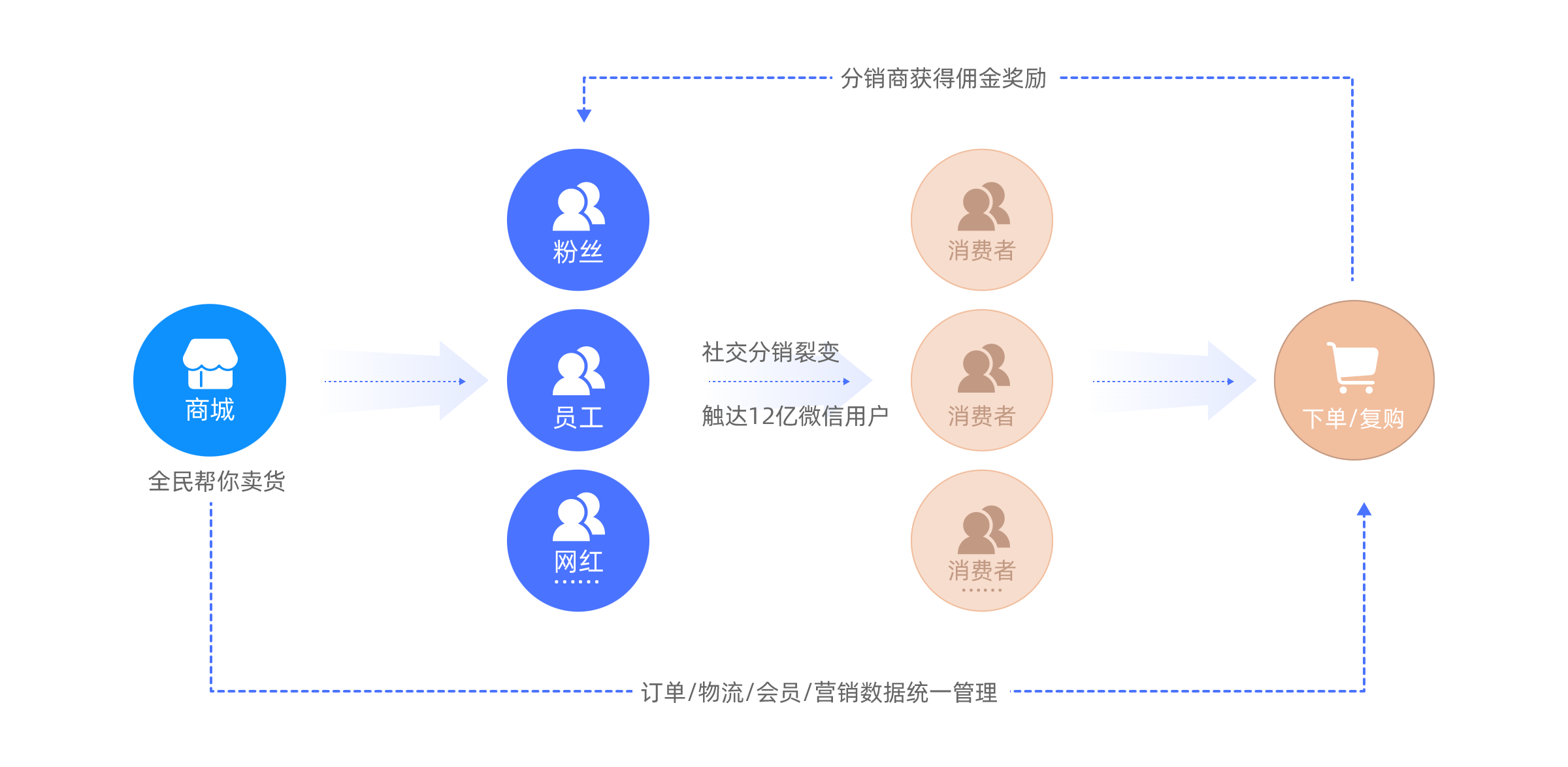自动锁定推荐链路,佣金比例灵活配置,智能结算佣金体系,佣金可提现可消费