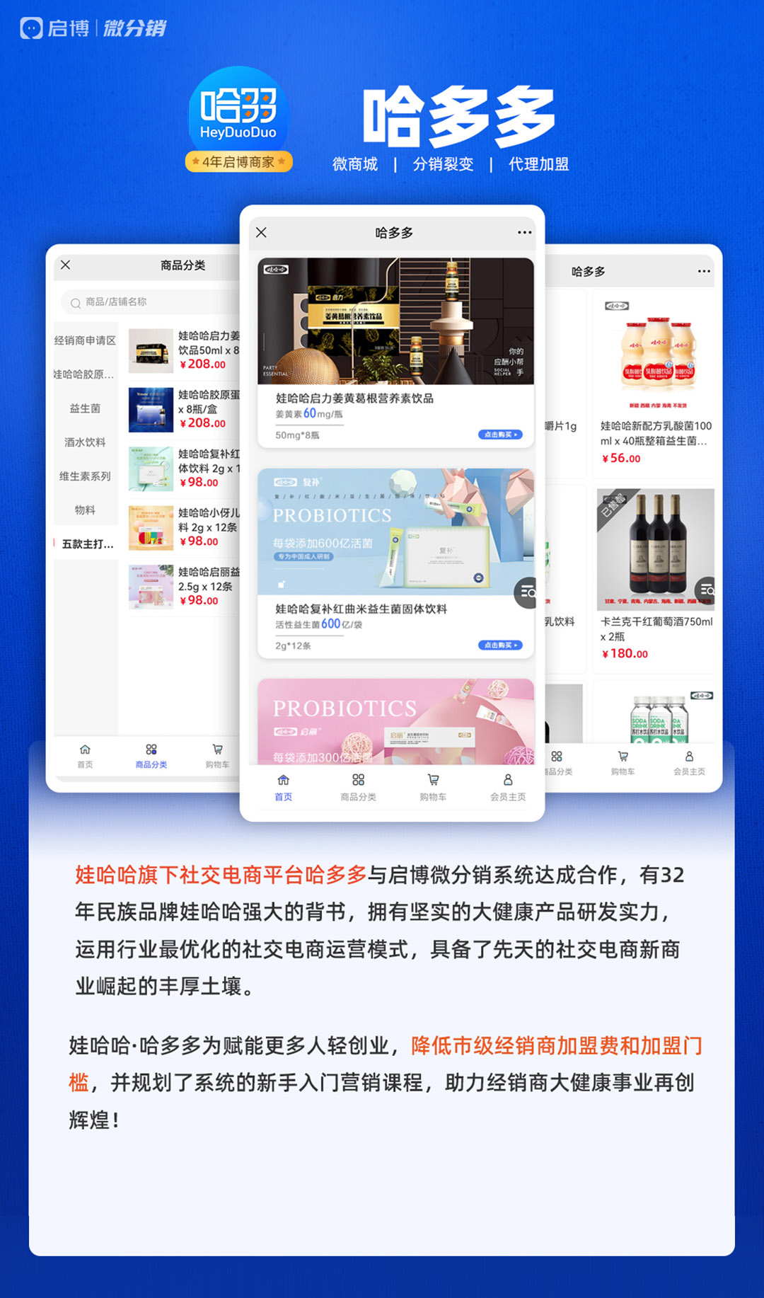 微分销商城与启博SCRM完美融合,打造真正的私域营销闭环,深度洞察客户偏好,定制精准方案,用微分销商城营销工具批量促活社群粉丝,提升客户粘性,赋能销售与运营,实现高效转化