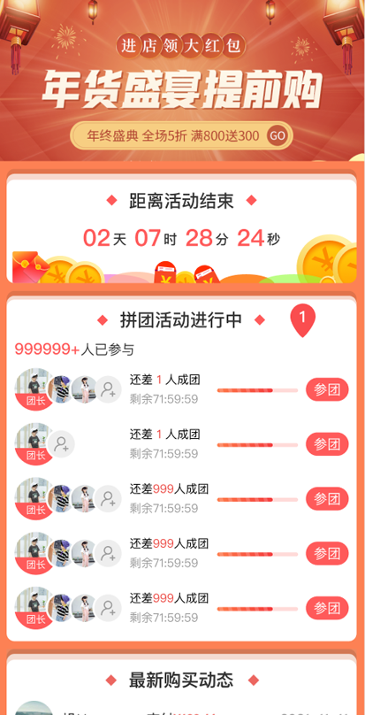 团长在社群等渠道发起拼团活动,邀请参团人数越多,红包返现越多,激励团长热情,助力商家快速清清理库存