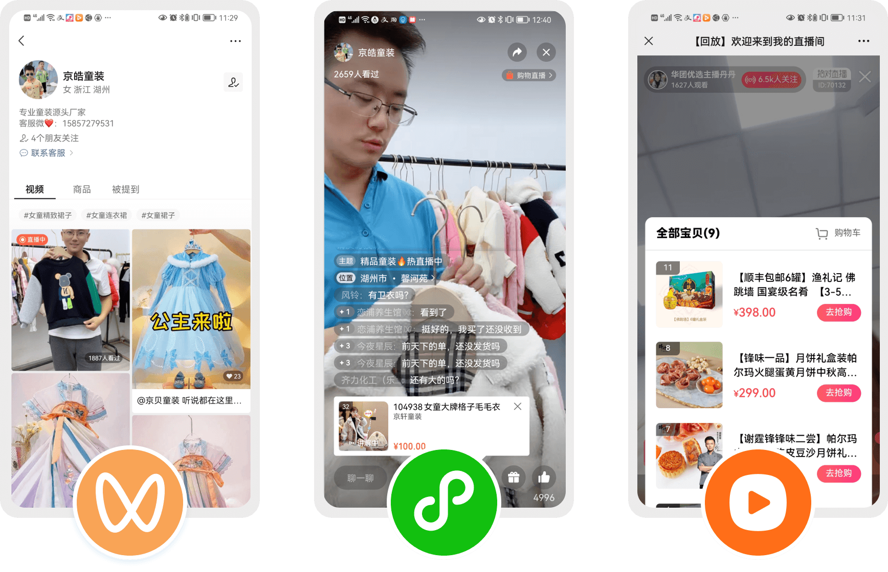 快速直播,全网卖货公众号、小程序、微信群、朋友圈等多个渠道预热,即看即买 -