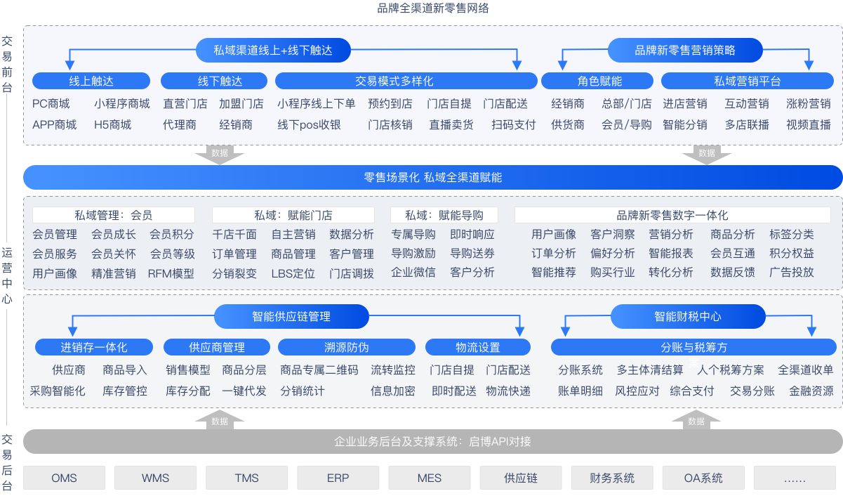 助力传统零售品牌数字化升级,深度结合大数据、供应链、云计算、社群等强力赋能门店,智能驱动线上线下每个环节升级。