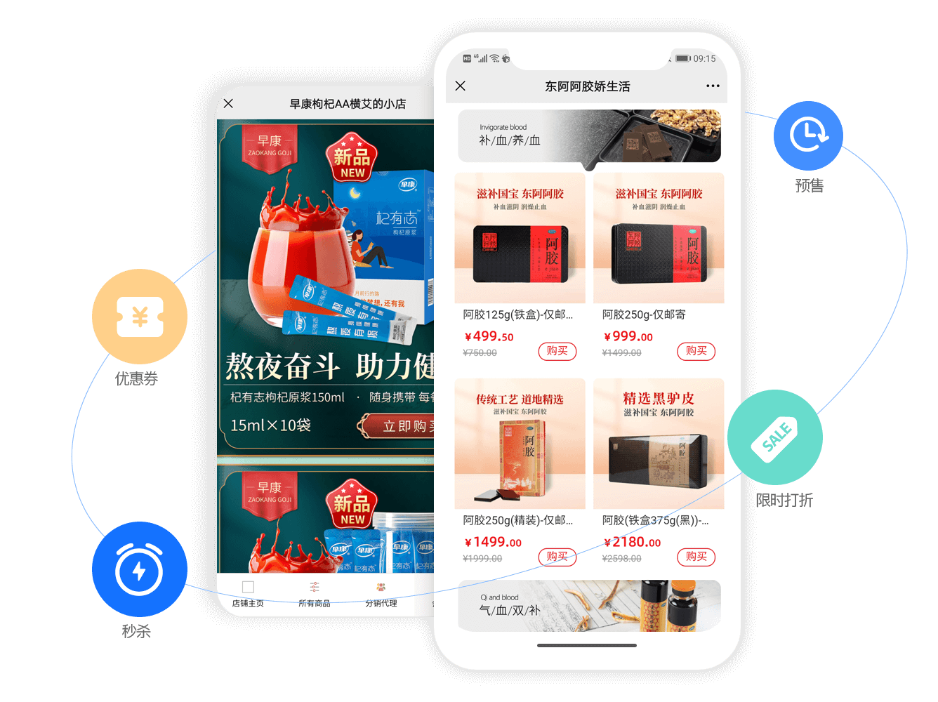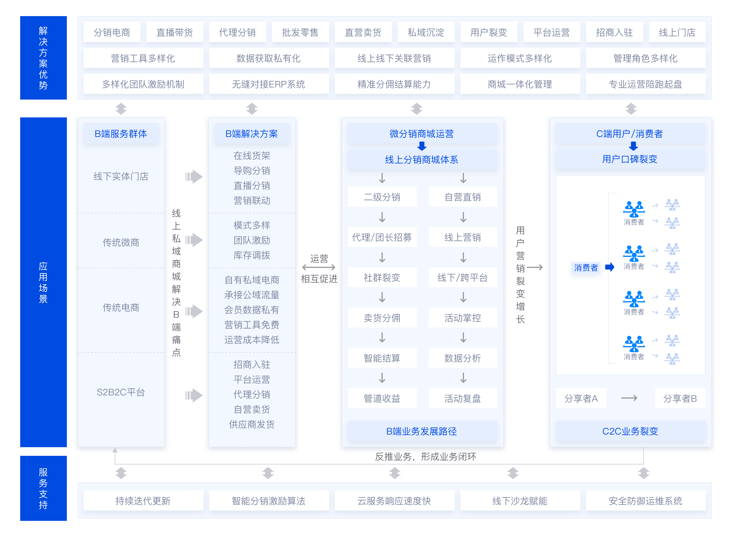 支持微商、门店、厂家等多种分销模式,深