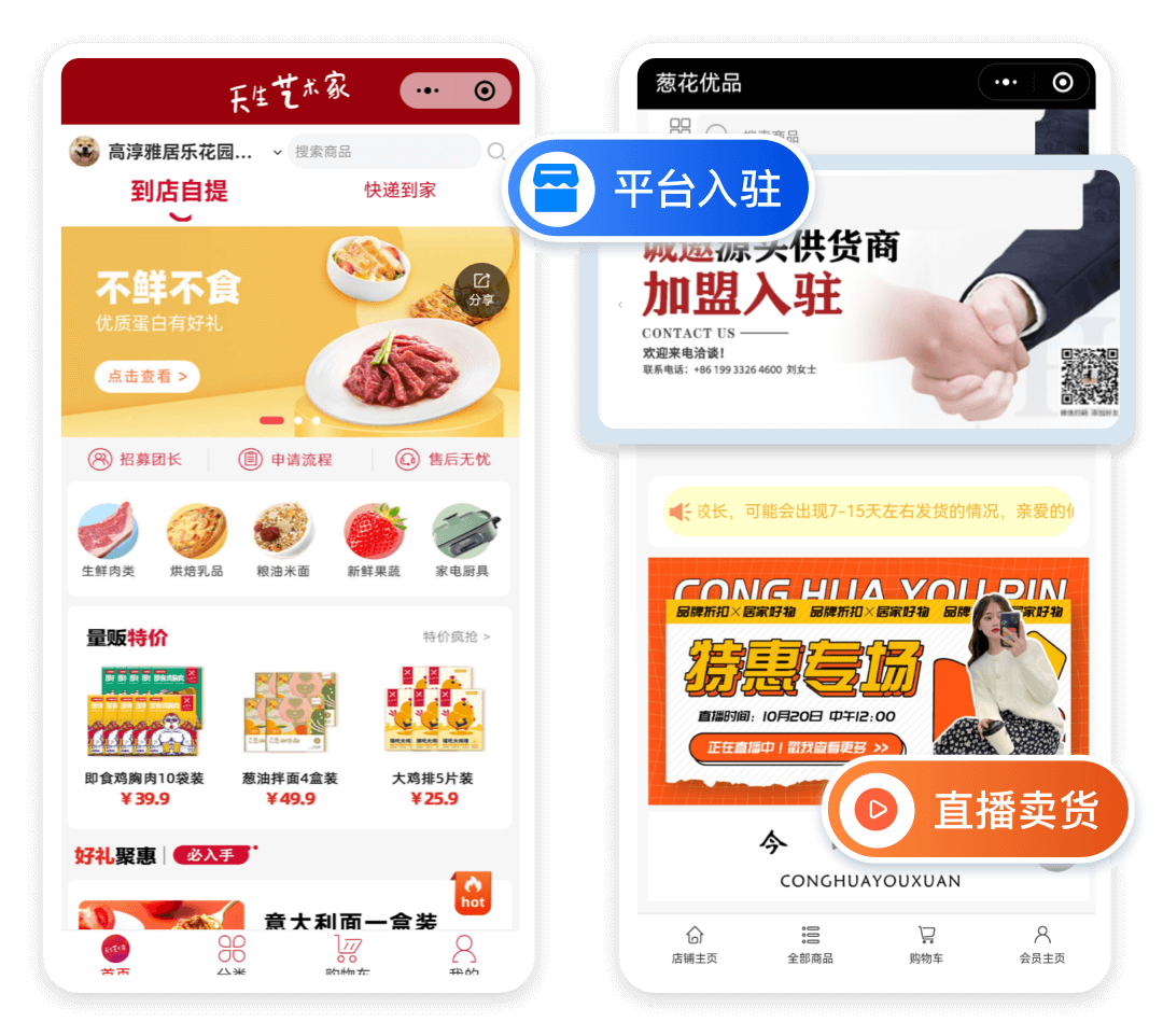 供销平台小程序整合上下游供应链,借助社交电商平台将线上线下资源融合 -