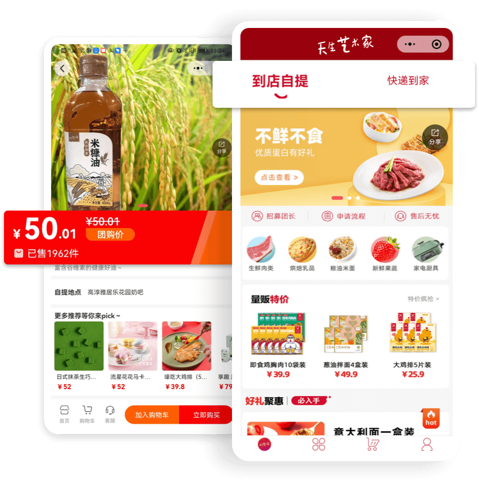 社群团购小程序整合多个社群资源,减少中间环节,采用预售+团购模式 -