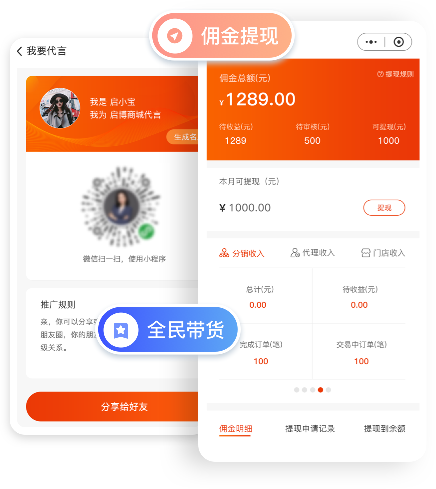 分销小程序全民轻创业社交电商小程序,让顾客成为分销员 -