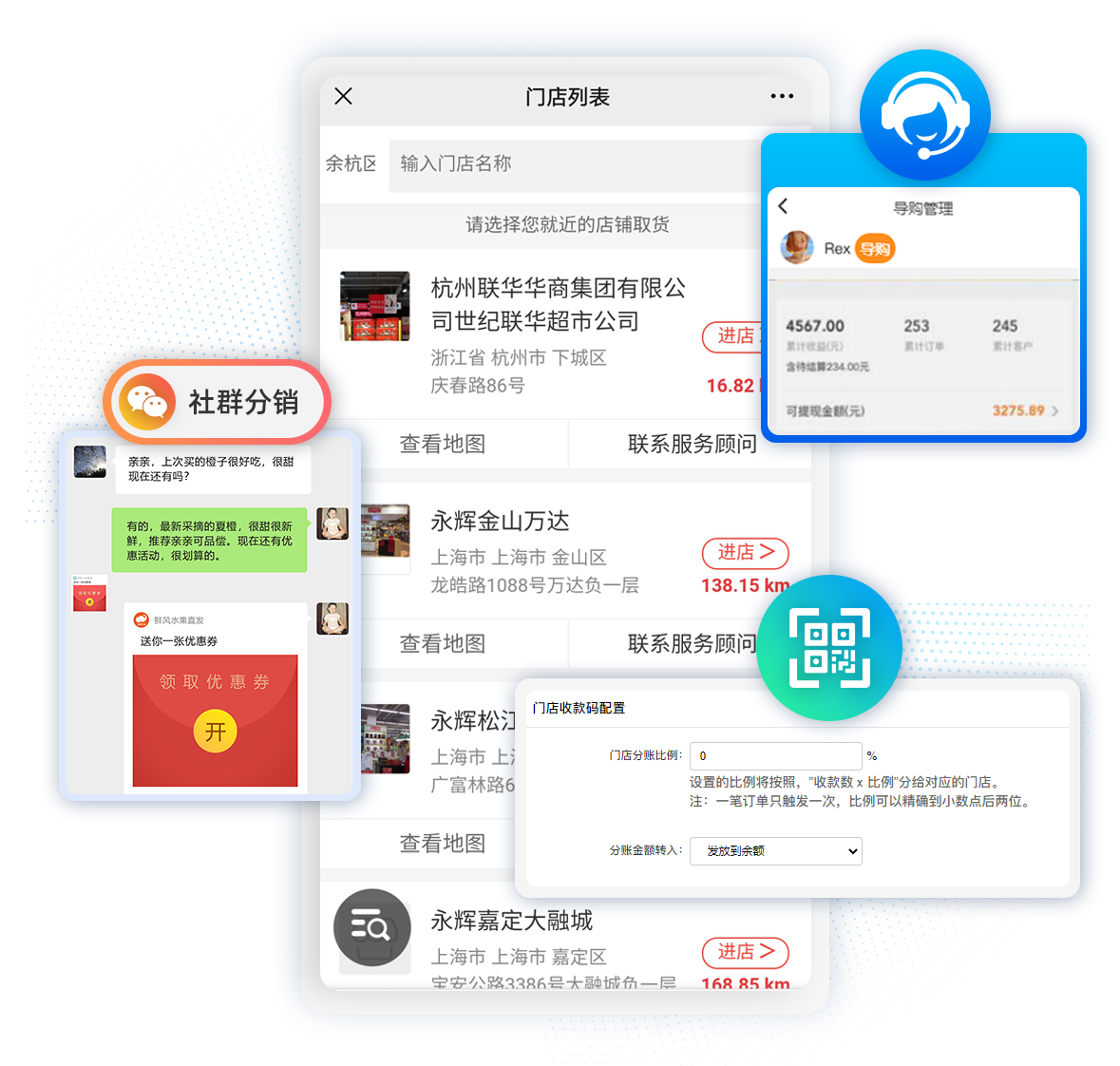 门店新零售千店千面,利用线上商城+社交分销,赋能线下门店,帮助门店线下线