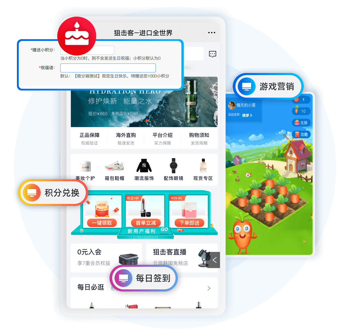 互动促活每日签到、积分兑换、生日营销、游戏营销等,促进会员粘性,培养会