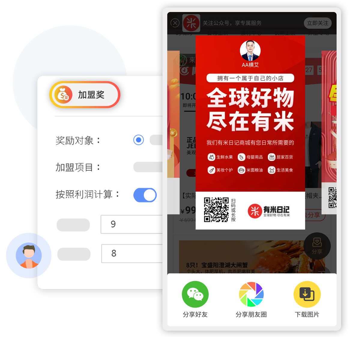 店中店,快速全渠道裂变公众号+小程序+微商城+朋友圈,快速分享裂变,以一店裂变万店,