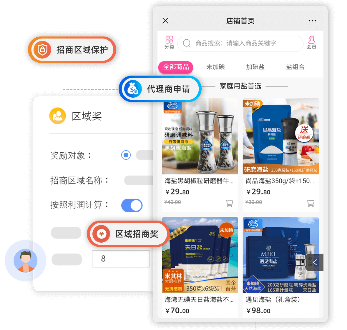 线上代理加盟模式,支持区域、非区域划分,裂变式招商获客更简单 -