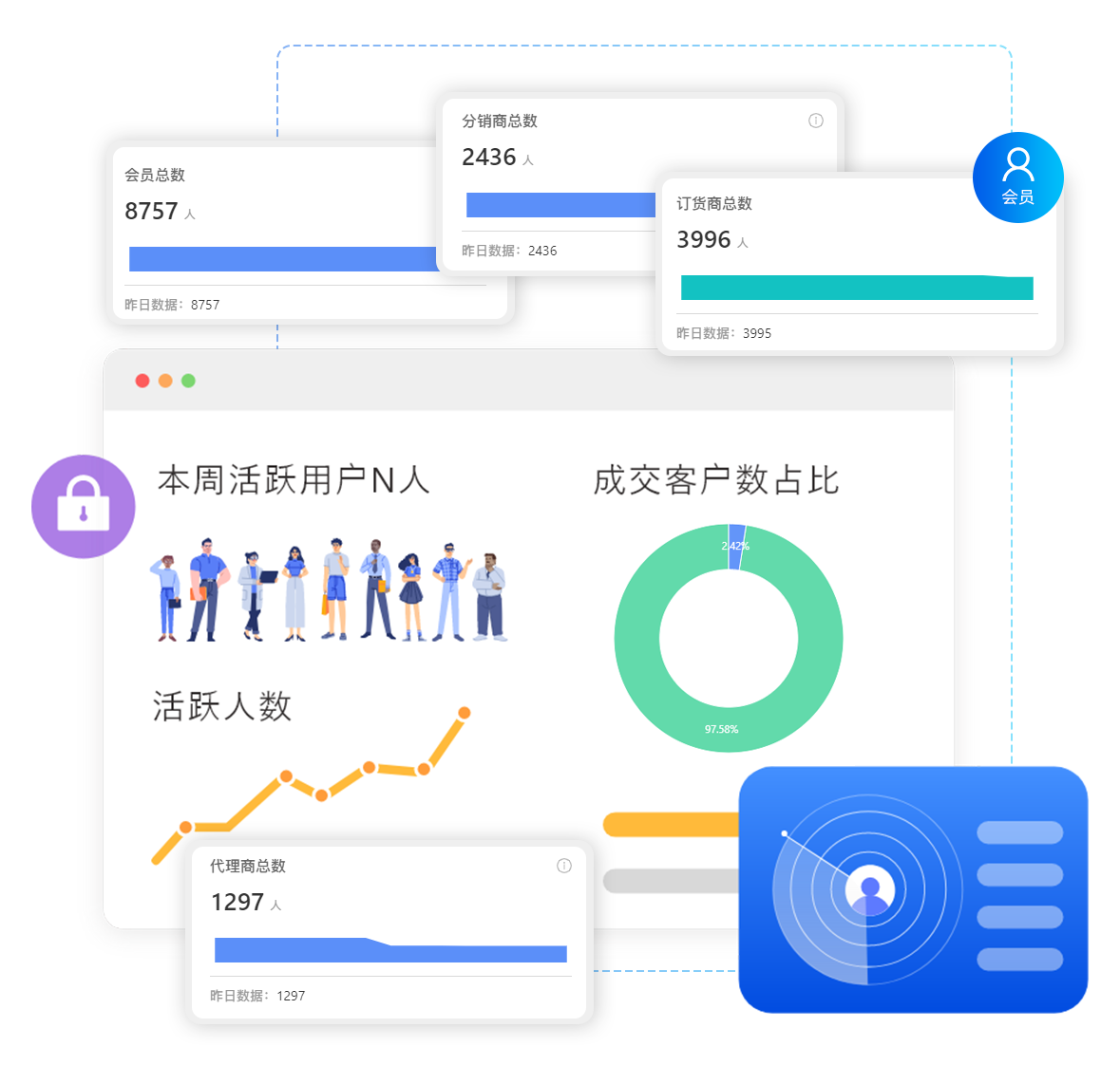 会员数据从累计粉丝、成交客户数、粉丝活跃度、领券会员等深度洞察会员消费