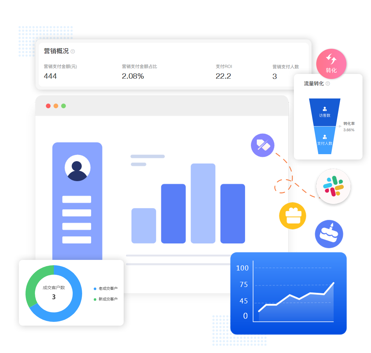 营销数据对各种营销策略活动数据进行大数据分析,不断复盘活动效果,驱动营